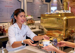 在充满冒险的一天里,想找个提神醒脑的好去处吗?荷兰大咖啡馆正是您的理想之选。它毗邻中庭区域,是与朋友小聚的绝佳场所——您可以在此享用冰镇啤酒、咖啡或其他荷兰特色饮品(如金酒和阿德瓦卡特利口酒),搭配精致小食。您可从16款比利时及荷兰啤酒(含四款生啤)和多种烈酒中挑选心仪之选,亦可搭配免费荷兰小食享用咖啡饮品。若想饱餐一顿,我们提供现点现做的荷兰特色美食,从开面鲱鱼三明治到苹果培根煎饼应有尽有。只需在柜台点单,所有餐点均会为您送至餐桌。
